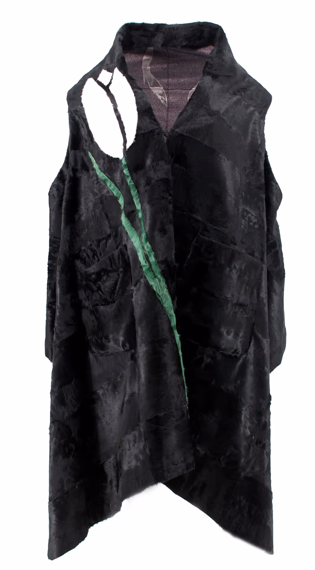 Collarless reversible baby lamb vest Designed for relaxed oversized fit. Patch pockets. Tulip intarsia. Hooks front closure. Unlined.