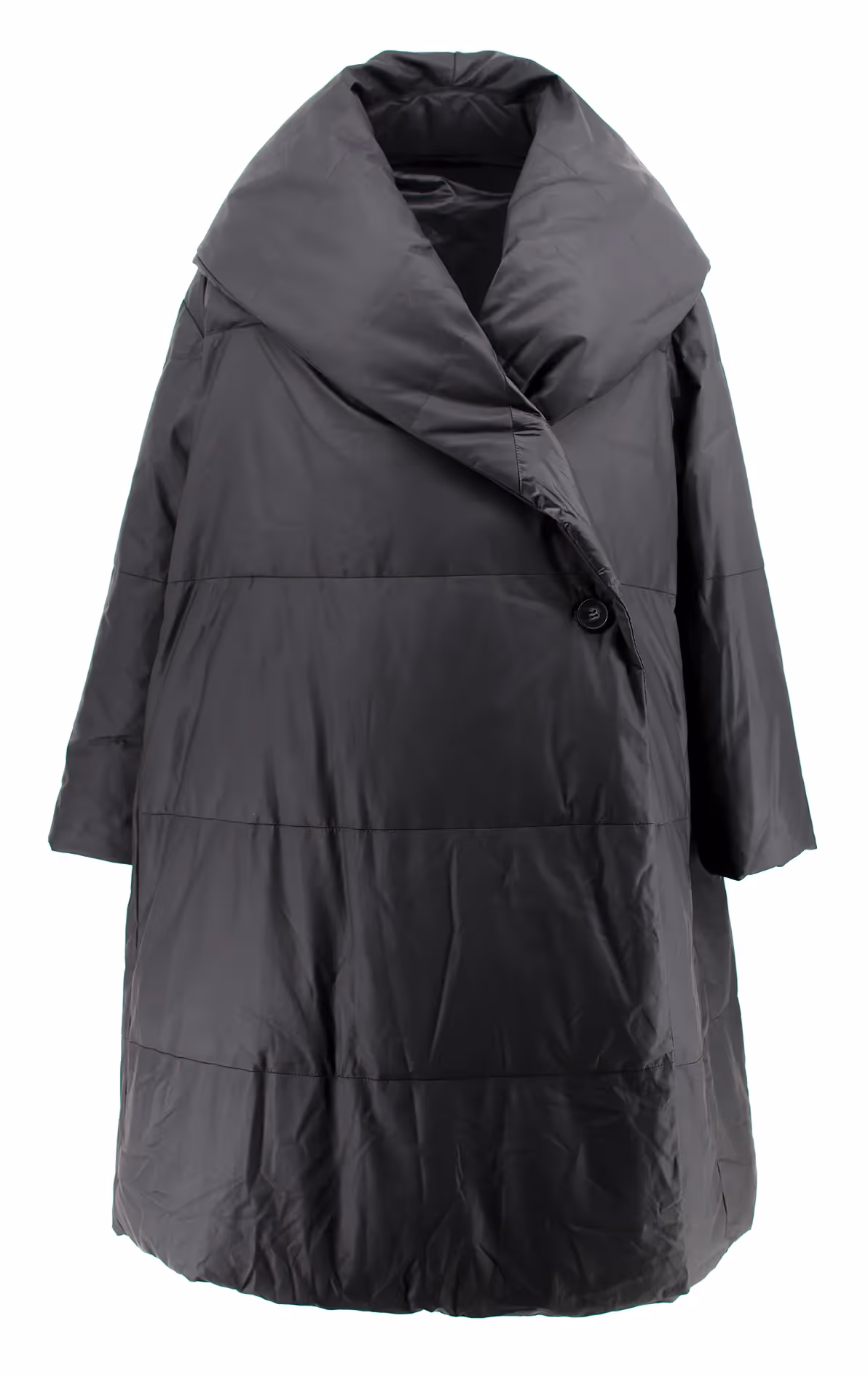 Down coat made of lamb skin with a shawl collar. Double-face. Interior side : 100% polyester. Insulation composition: 95% goose down,5 % goose feather. Length 44" Color black