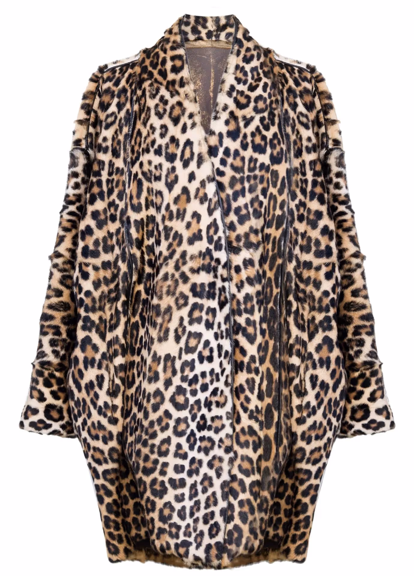 Reversible goat jacket with a shawl collar and detachable sleeves. Designed for relaxed oversized fit. Side slit pockets. Snap front closure. Detachable 100% silk lining with signature Helen Yarmak print.