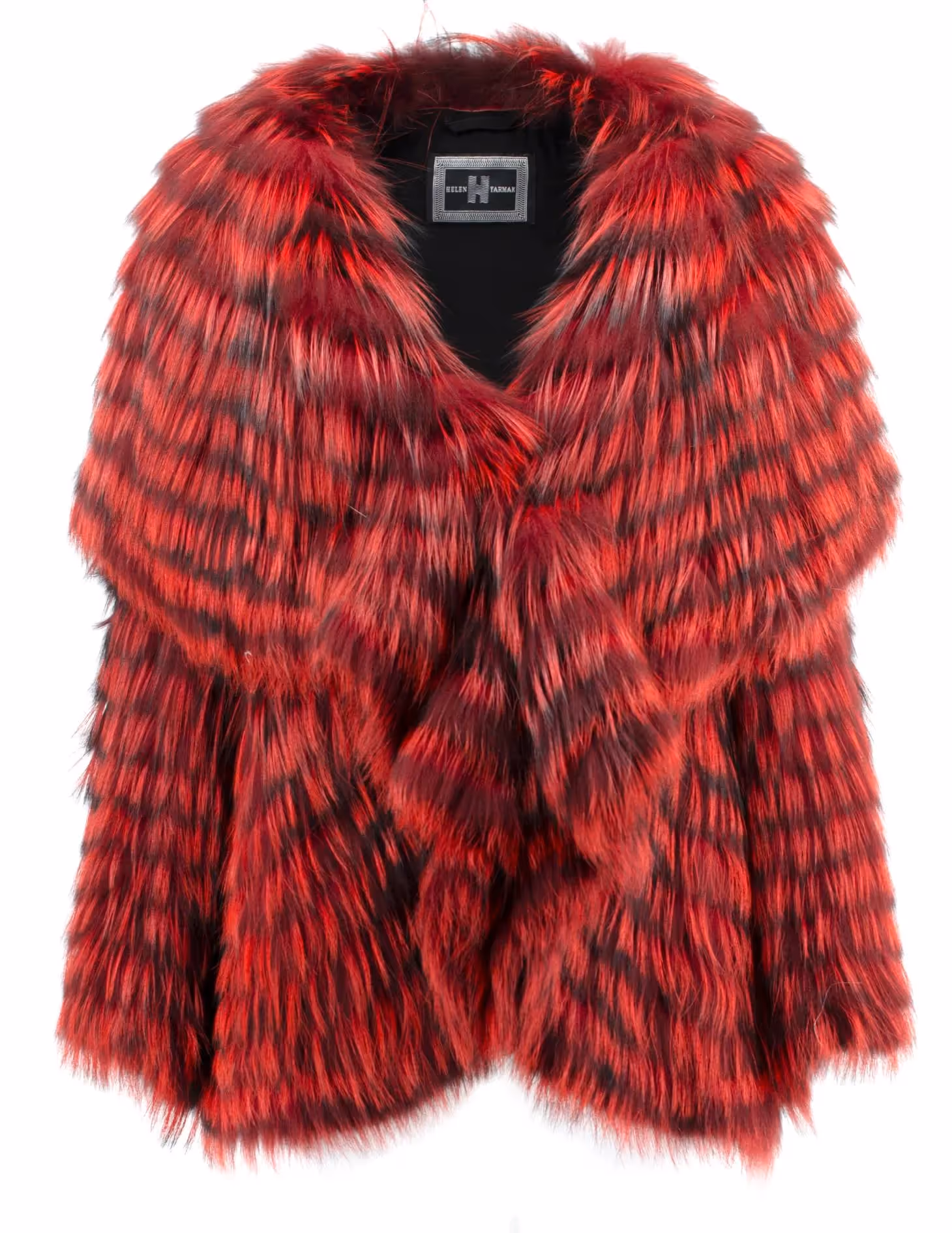 Silver fox/chiffon jacket. Striped workmanship. Extra light. Wide double collar-front panel. Button closure.